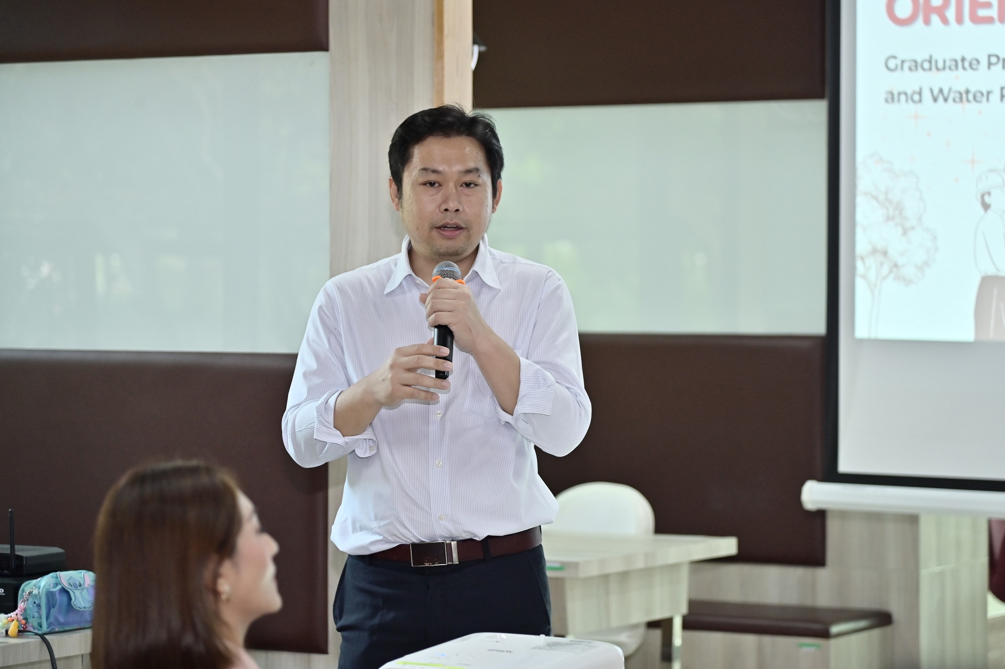New students had the opportunity to introduce themselves and share their feelings about starting their graduate journey. Alumni and current students also shared their experiences, including representatives from both doctoral and master’s programs, the double degree master’s program with Kyoto University, Japan, and the I-WASH Summer Course 2025 at Institut Teknologi Bandung, Indonesia.