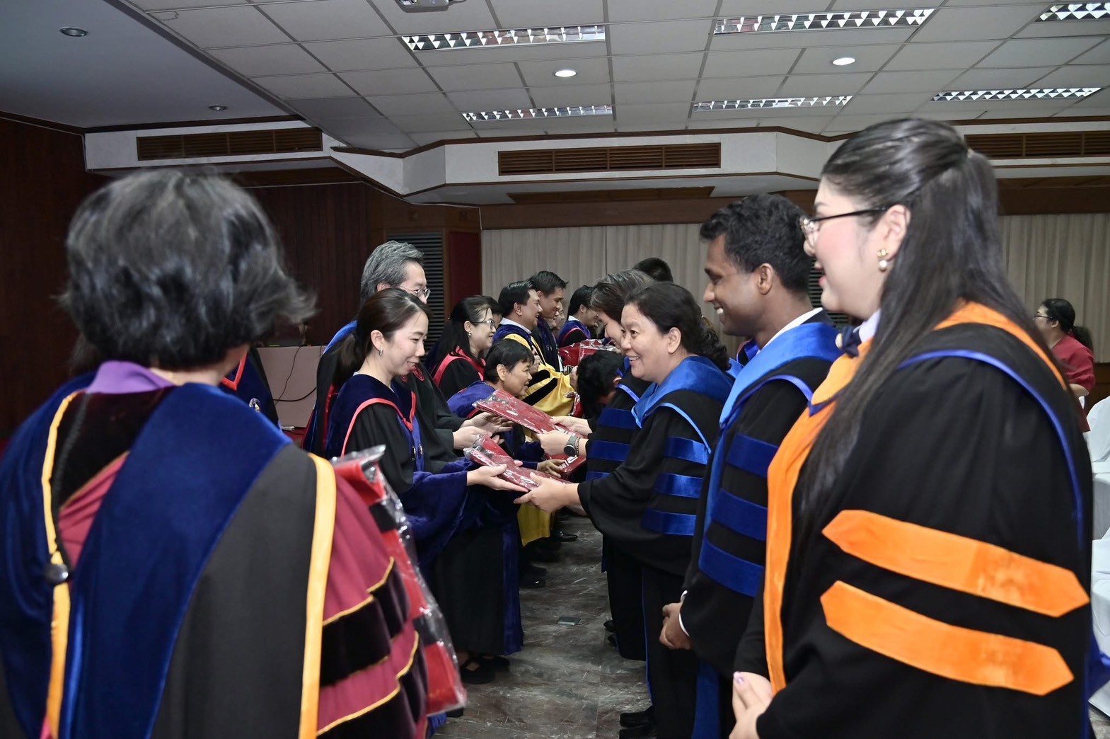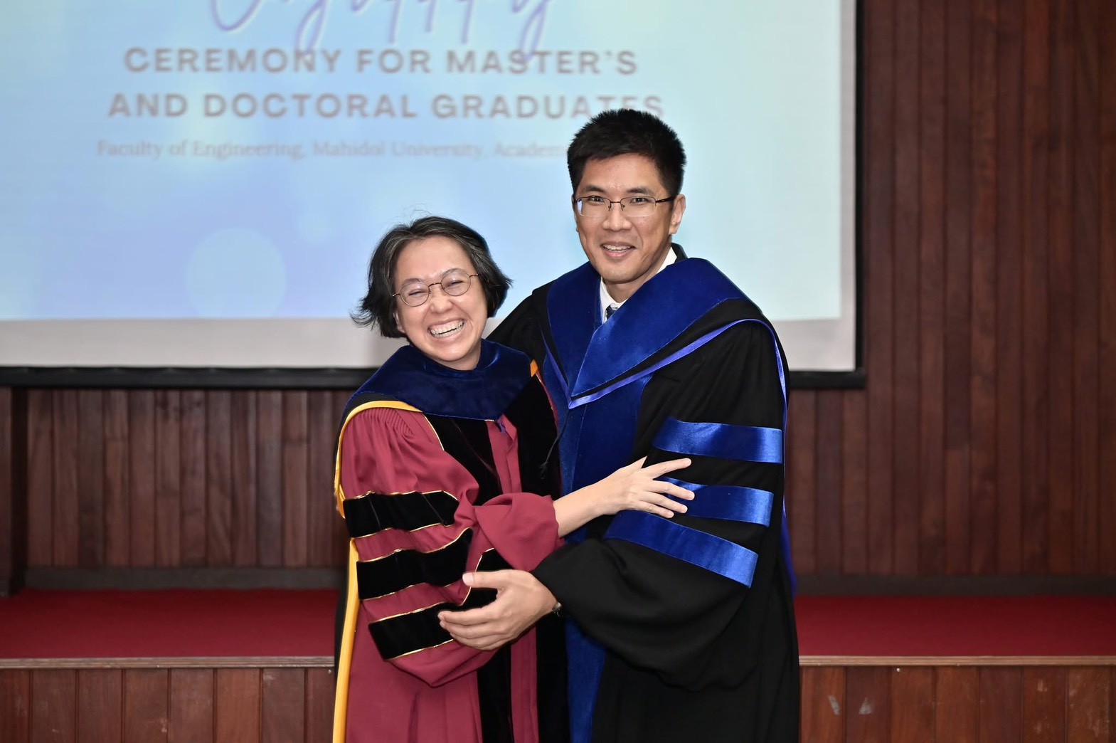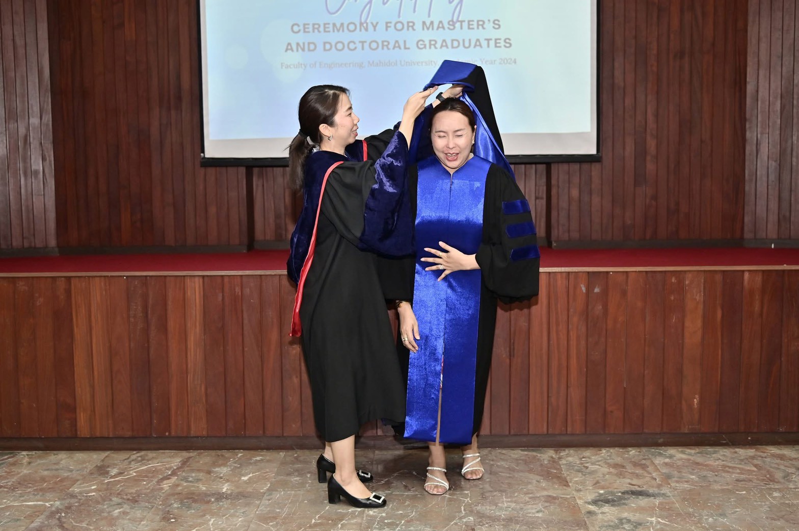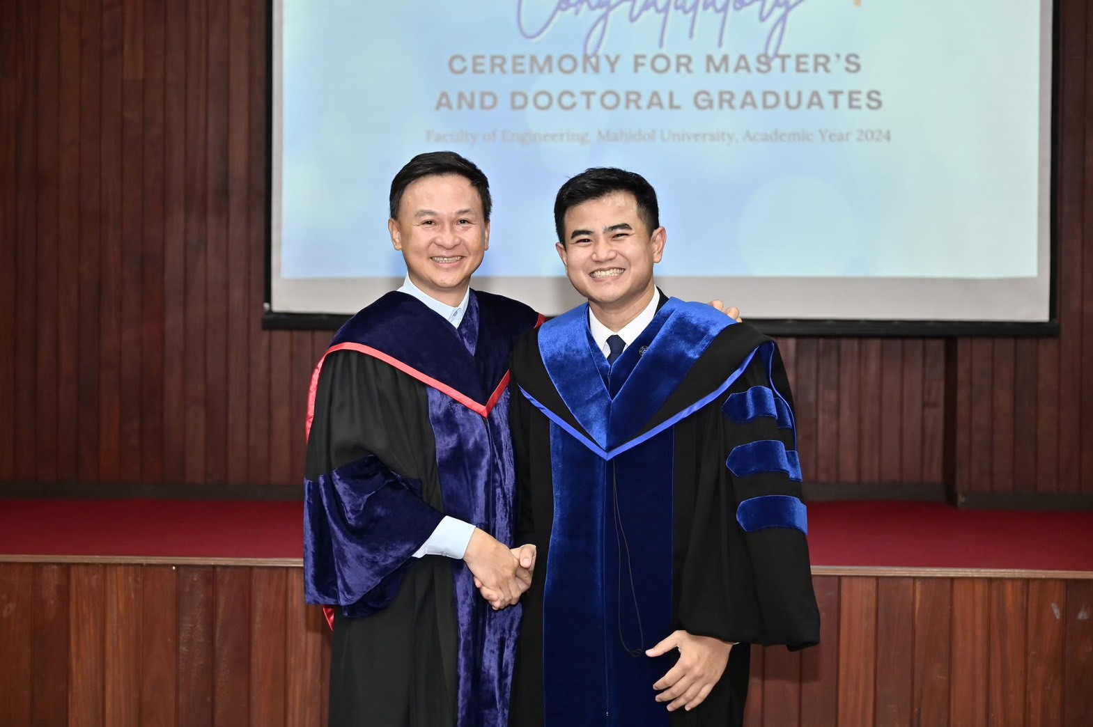 On October 3, 2025, the Faculty of Engineering, Mahidol University, held a Congratulatory Ceremony for Master’s and Doctoral graduates of Academic Year 2024 in Meeting Room R114, Building 1. The event was attended by faculty executives, professors, and distinguished guests, who gathered to honor the graduates’ achievements in an atmosphere of pride and warmth.