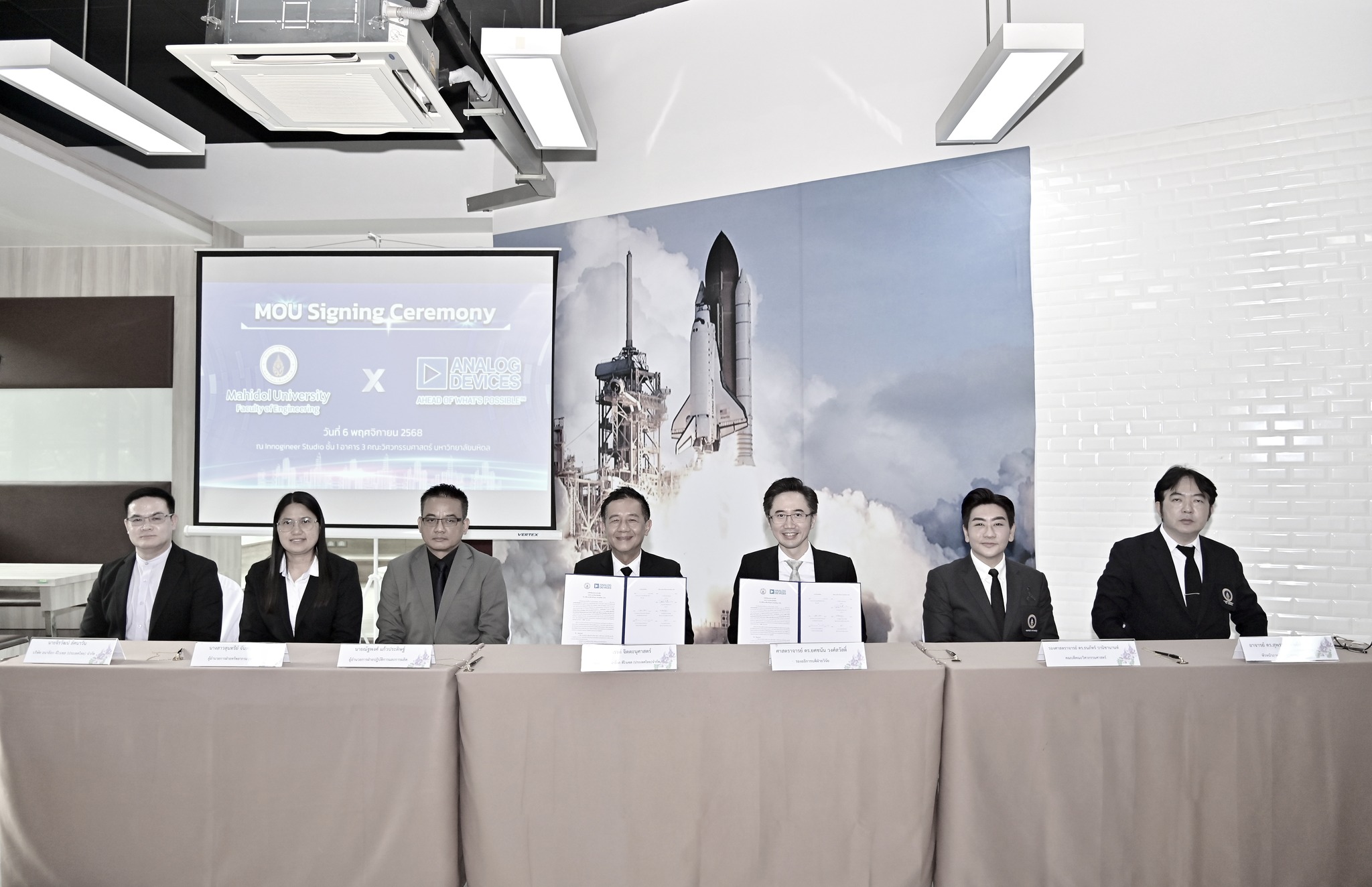 On November 6, 2025, the Faculty of Engineering, Mahidol University, held a Memorandum of Understanding (MoU) signing ceremony with Analog Devices (Thailand) Co., Ltd. The event took place at Innogineer Studio, Faculty of Engineering, Mahidol University, Salaya Campus. The ceremony began with welcoming remarks and an introduction of the objectives by Associate Professor Dr. Surachoke Thanapitak, a lecturer from the Department of Electrical Engineering.