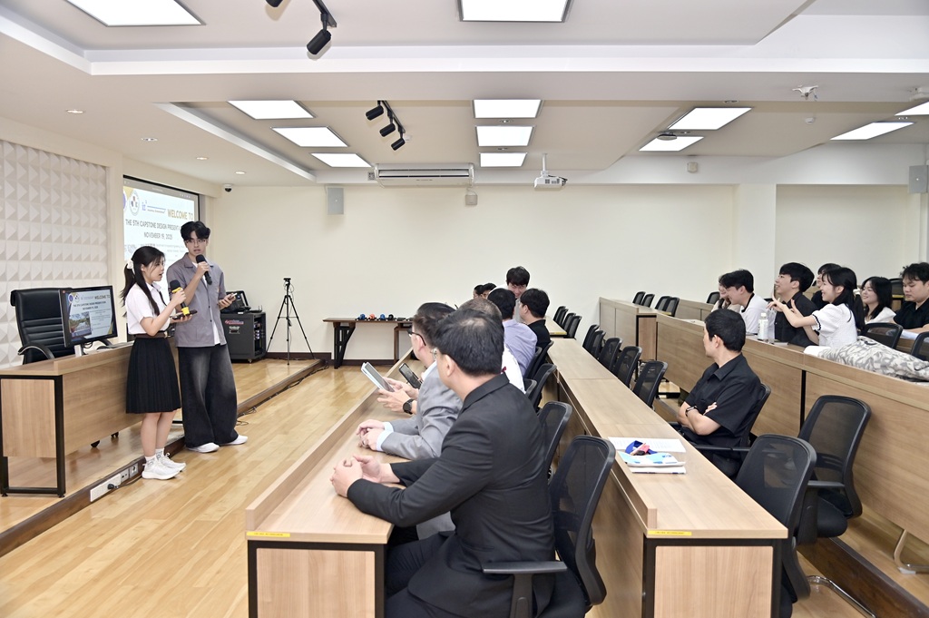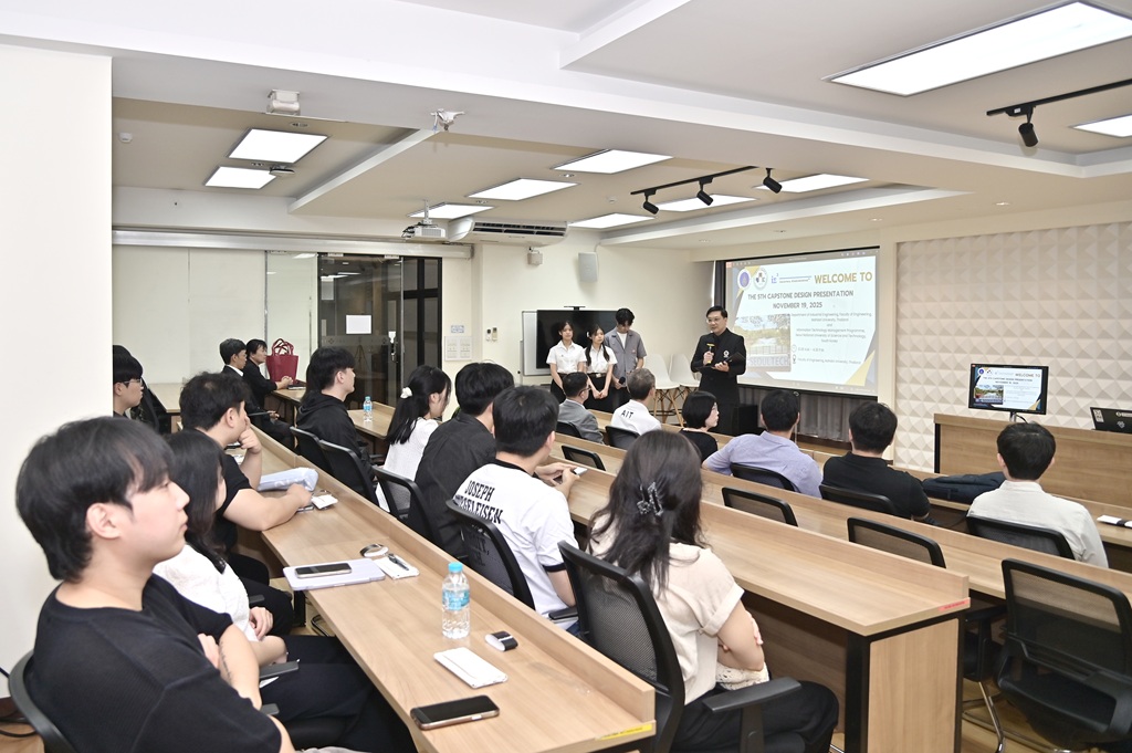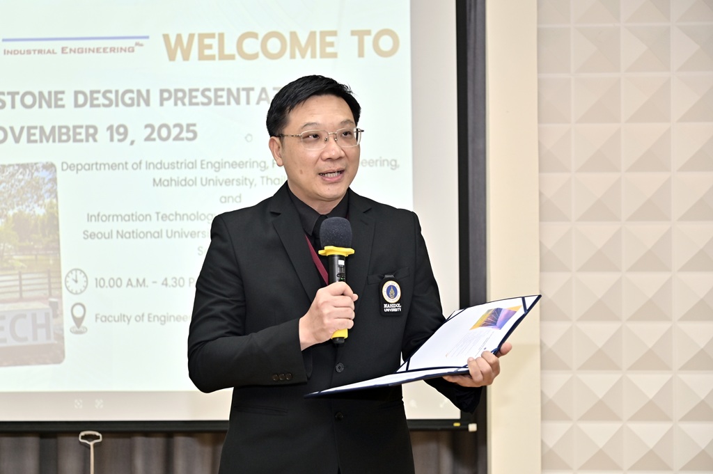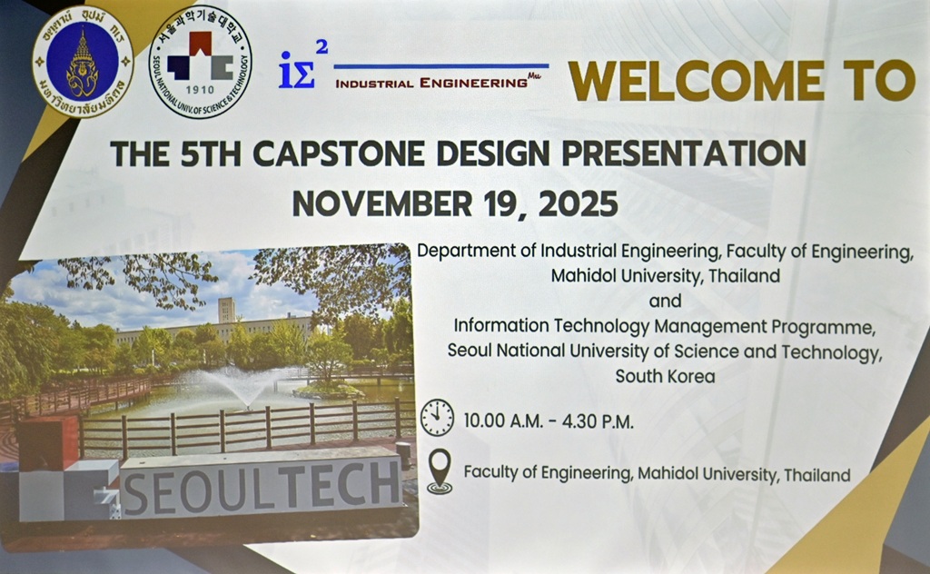 On 19 November 2025, the Department of Industrial Engineering of the Faculty of Engineering, Mahidol University, with the Information Technology Management Programme of Seoul National University of Science and Technology, Korea, organized The 5th Capstone Design Presentation in Room R301, 3rd Floor, Building 1, of the Faculty of Engineering, Mahidol University. Now in its fifth consecutive year, the event reflects the strong academic partnership that exists between the two institutions, enhancing student skills and driving research toward international standards.