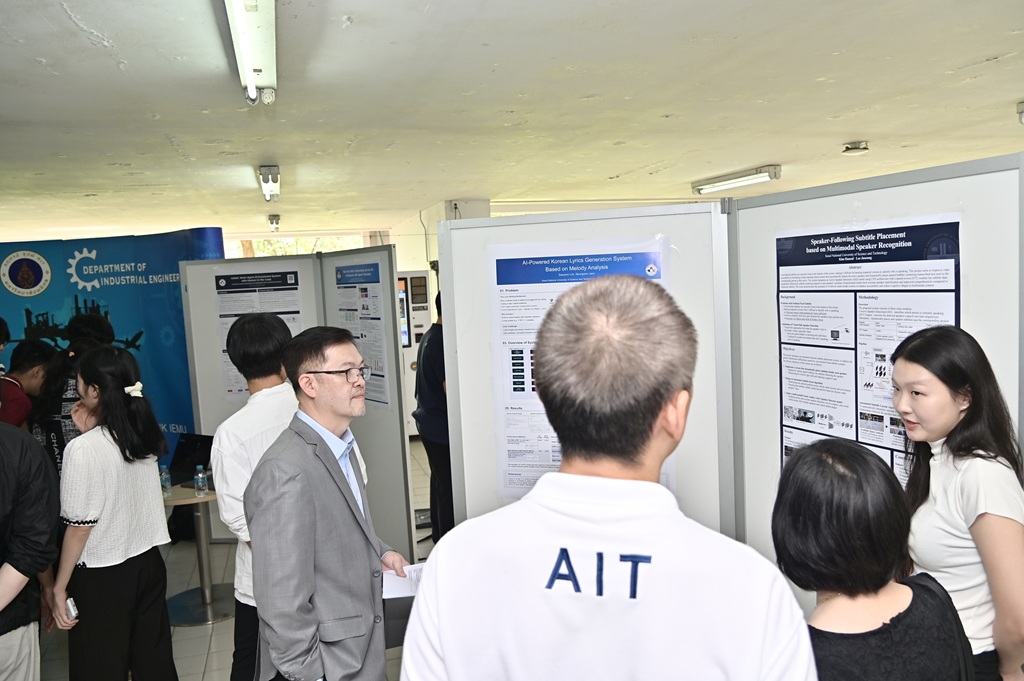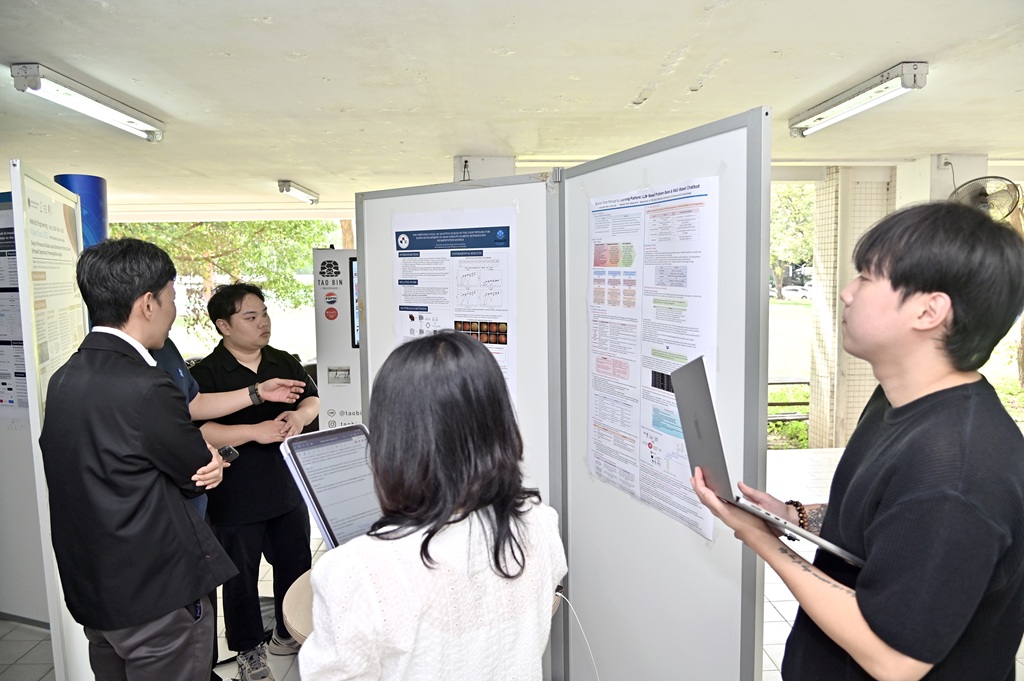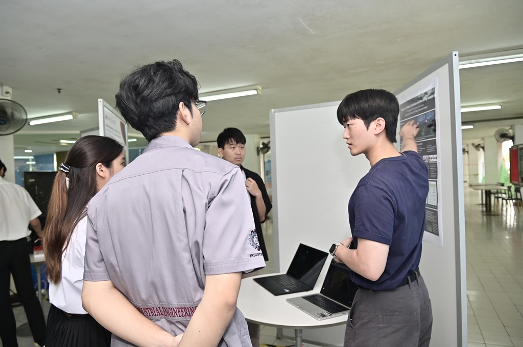 The event was honored by Assistant Professor Dr. Ronnachai Sirovetnukul, Deputy Dean for Human Capital and Information Management, who presided over the opening ceremony. Lecturer Gunn Kanatarntip, Head of the Department of Industrial Engineering, delivered an event report and explained the objectives. The activity provided a platform for students from both universities to present engineering and technology projects, exchange learning experiences, discuss design processes, and collaboratively develop innovative solutions. In addition to the presentations, project showcases were also displayed in the public area of Building 1, allowing those interested to explore the work and interact directly with the project developers. Faculty members, students, and experts from both countries joined the exhibition and offered valuable feedback.
