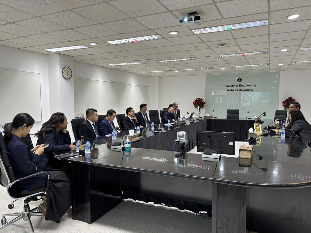On 24 November 2025, Associate Professor Dr. Thanapat Wanichanon, Dean of the Faculty of Engineering, Mahidol University, welcomed a delegation from Harbin Engineering University (HEU), People’s Republic of China. He was accompanied by Assistant Professor Dr. Pattaraporn Posoknistakul, Deputy Dean for International Relations and Corporate Communication and Assistant Professor Dr. Sotarat Thammaboosadee, Assistant Dean for Organizational Digital Transformation, The event in Room R-210, Building 1, was to discuss ongoing academic cooperation and explore opportunities for deeper collaborative development between the two institutions.