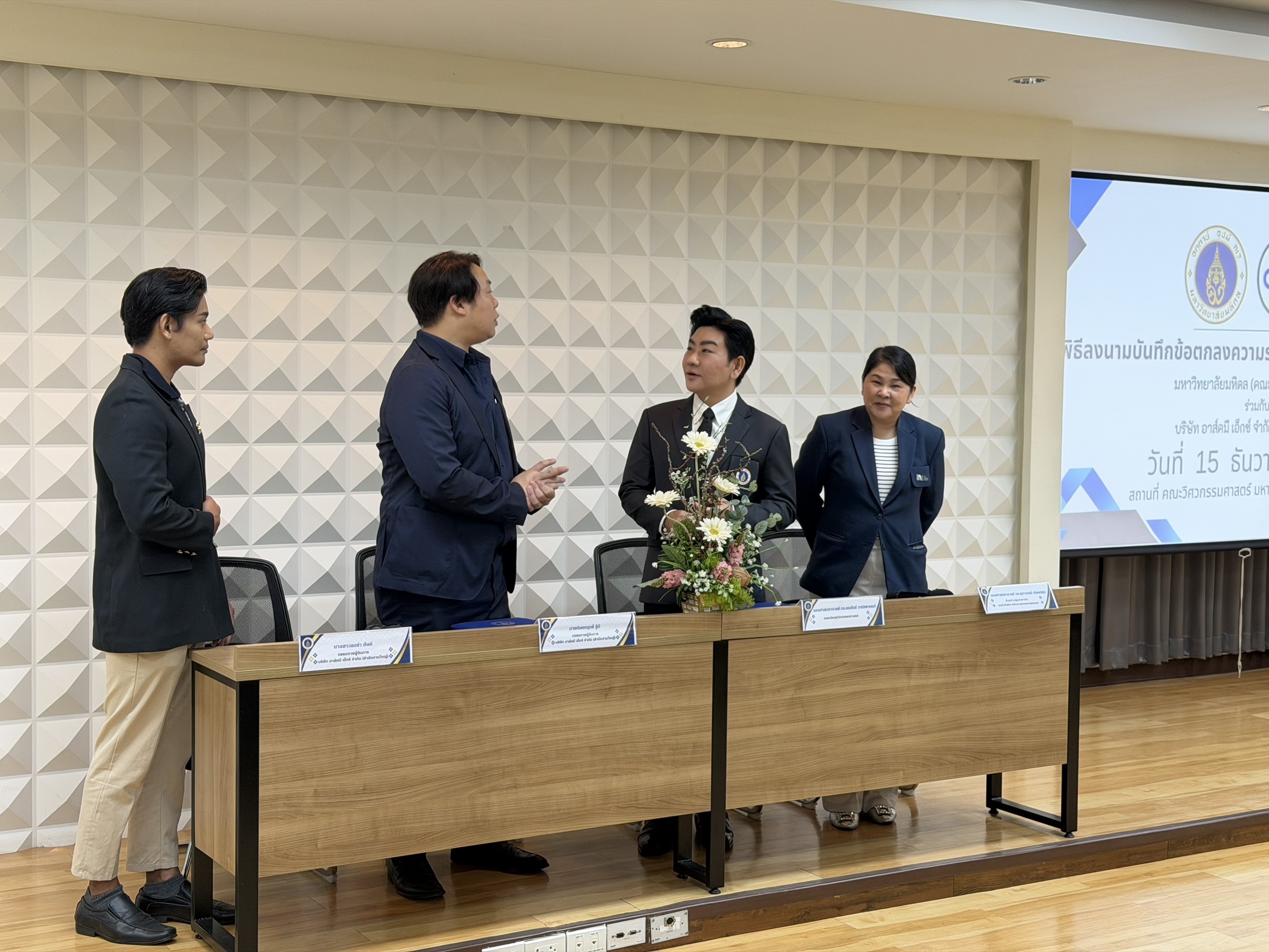 On 15 December 2025, the Information Technology Management Division (ITM) of the Faculty of Engineering, Mahidol University and representatives of Ask Me X Co., Ltd., held a signing ceremony for a Memorandum of Understanding (MOU) on academic cooperation. The ceremony took place in Room R301, 3rd Floor, Building 1, Faculty of Engineering, Mahidol University, Salaya Campus. The aim of the MOU was to strengthen collaboration in developing digital technology talent.