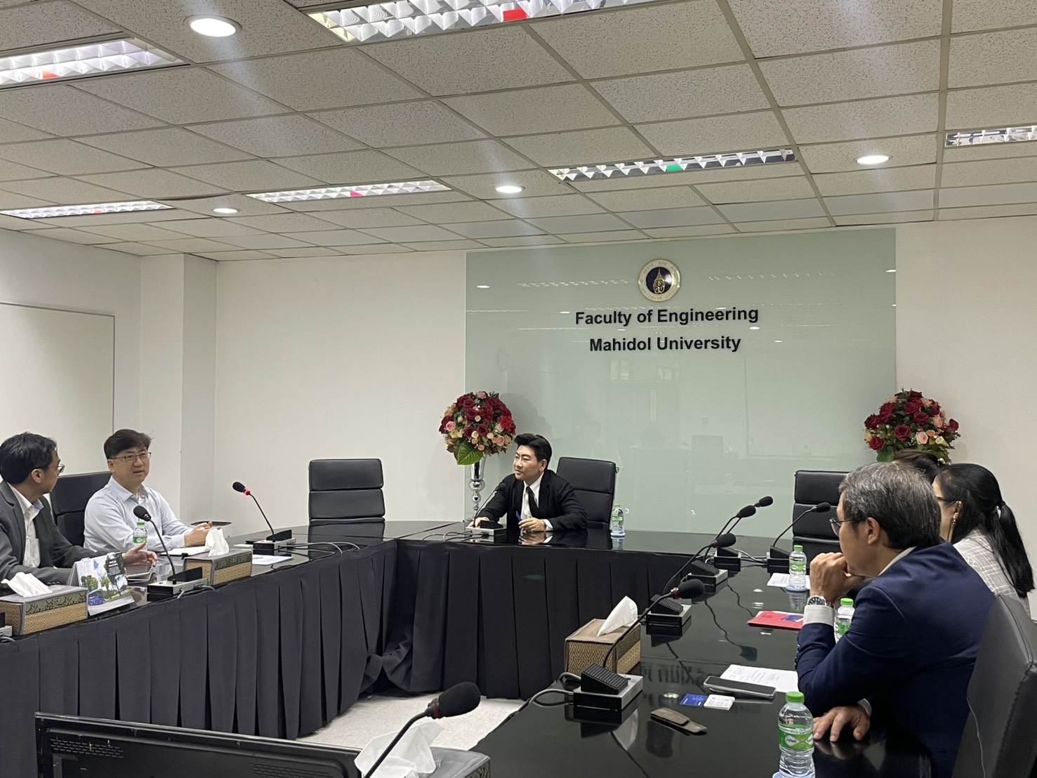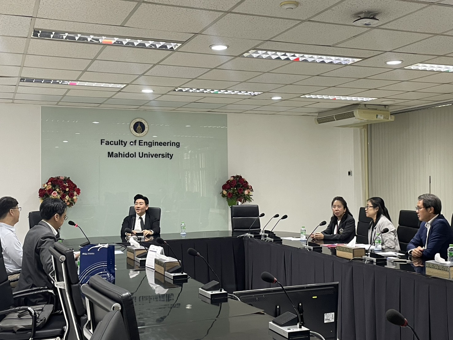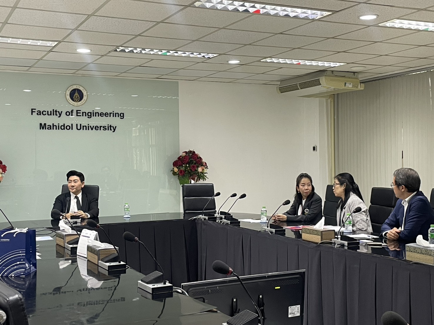 On February 16, 2026. The Faculty of Engineering at Mahidol University welcomed representatives from Korea Aerospace University (KAU), Republic of Korea. Associate Professor Dr. Thanapat Wanichanon, Dean of the Faculty of Engineering, met the delegation. He was accompanied by Dr. Rojjalak Chuckpaiwong, Deputy Dean for Strategic Management and Quality Assurance; Assistant Professor Dr. Wasaporn Techapeeraparnich Deputy Dean for Academic and Student Affairs; and Assistant Professor Dr. Siradol Siridhara, Chair of the Logistics and Rail Engineering Division. The meeting was held in Room R210, Building 1 of the Faculty of Engineering, Mahidol University.