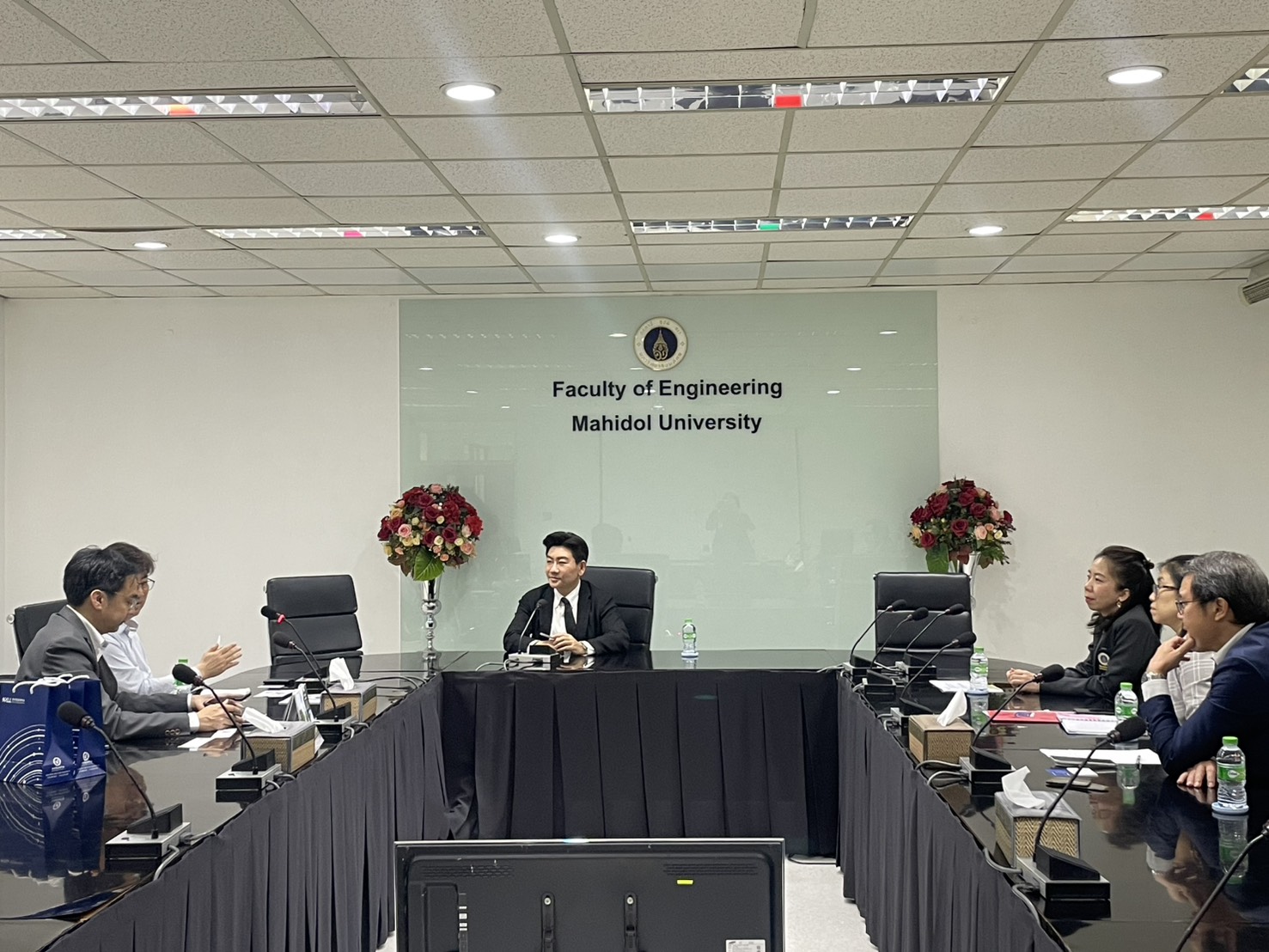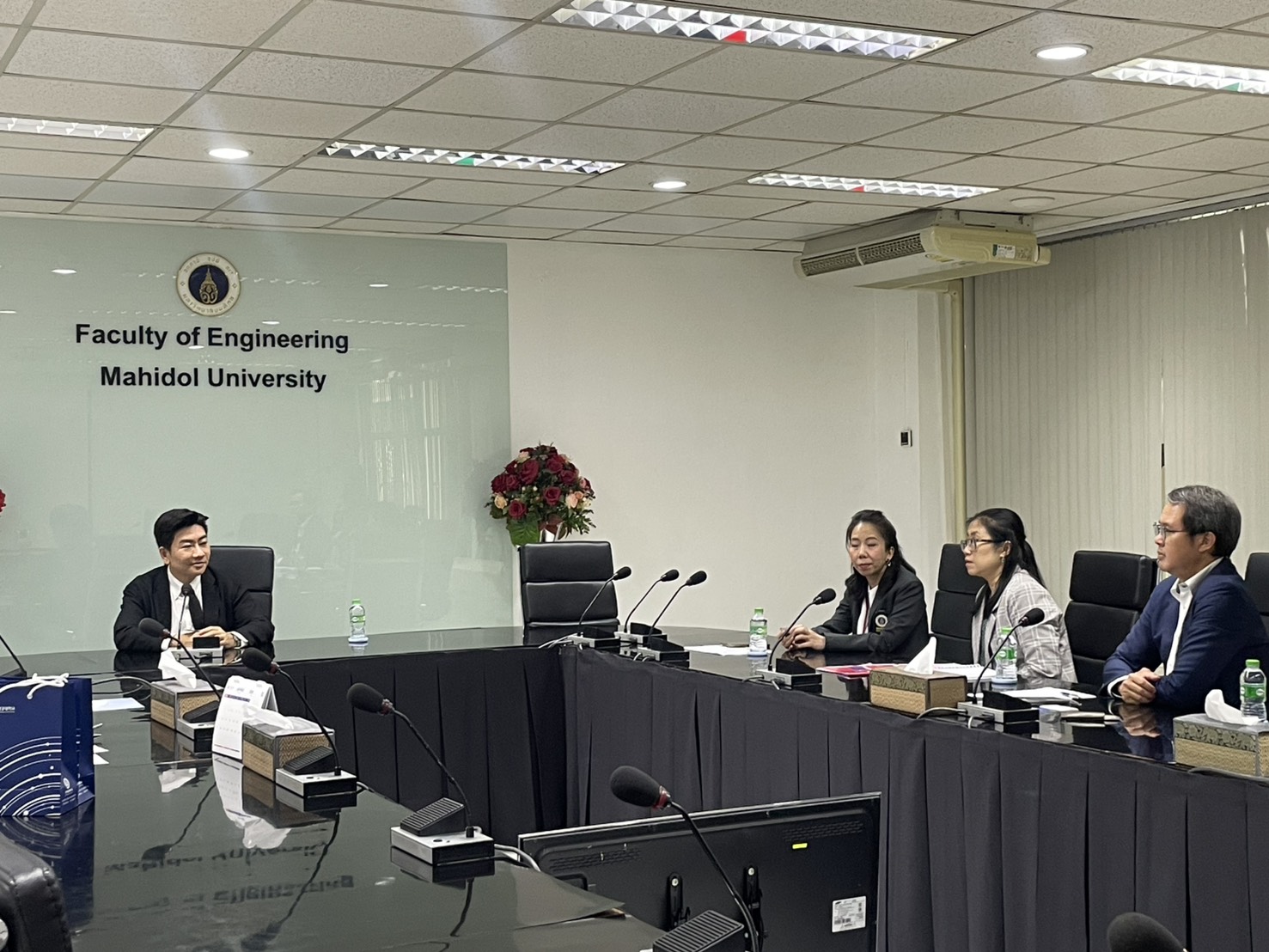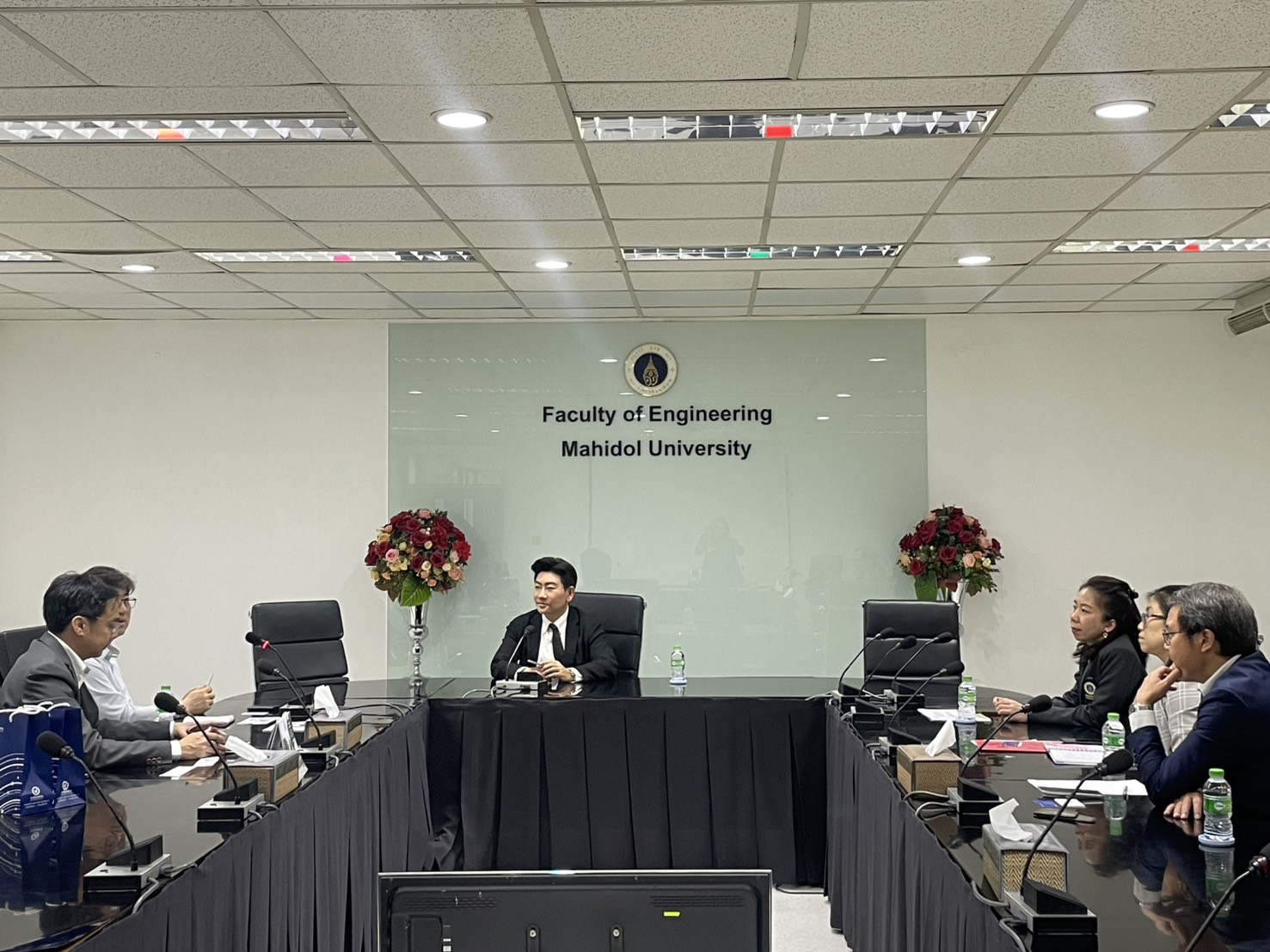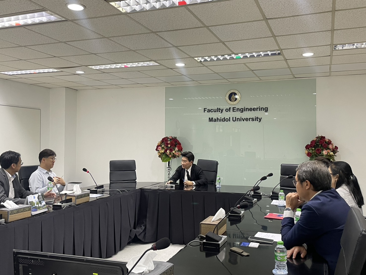 On February 16, 2026. The Faculty of Engineering at Mahidol University welcomed representatives from Korea Aerospace University (KAU), Republic of Korea. Associate Professor Dr. Thanapat Wanichanon, Dean of the Faculty of Engineering, met the delegation. He was accompanied by Dr. Rojjalak Chuckpaiwong, Deputy Dean for Strategic Management and Quality Assurance; Assistant Professor Dr. Wasaporn Techapeeraparnich Deputy Dean for Academic and Student Affairs; and Assistant Professor Dr. Siradol Siridhara, Chair of the Logistics and Rail Engineering Division. The meeting was held in Room R210, Building 1 of the Faculty of Engineering, Mahidol University.