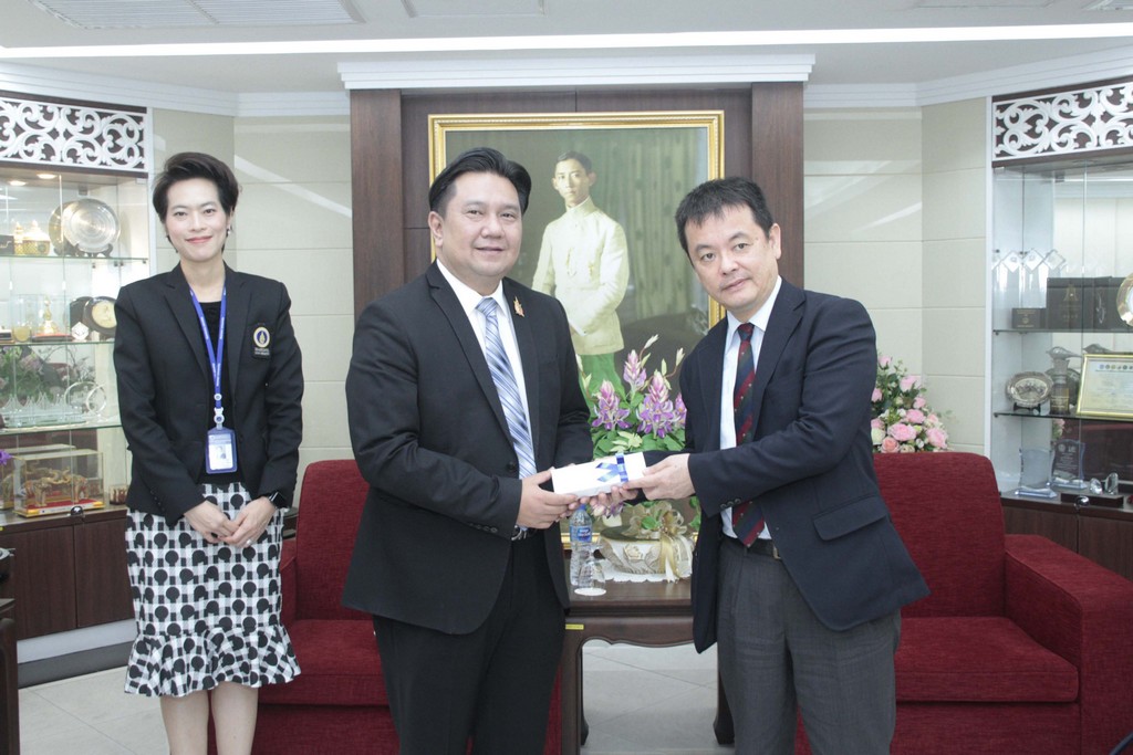 20 December 2018, at VIP Room, Office of President, Mahidol University, Assoc. Prof. Dr. Nopraenue Sajjarax Dhirathiti, Acting Vice President for International Relations and Corporate Communication, Asst. Prof. Dr. Jackrit Suthakorn, Dean of the Faculty of Engineering, Assoc. Prof. Dr. Yodchanan Wongsawat, Vice Dean for Research and International Relations, Faculty of Engineering, and Asst. Prof. Dr. Chanchai Phonthanukitithaworn, Associate Dean for Corporate Communication and Information Technology, Mahidol University International College welcomed the delegation from Graduate School of Systems Life Sciences, Kyushu University, Japan, Prof. Masahiro Okamoto, and Prof. Keiji Iramina. The purpose of this visit was to discuss further collaboration with a particular focus on the exchange program.