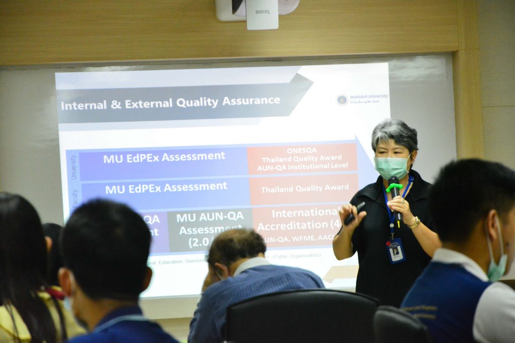 Ms. Siriluck Kiewkong explained the key points for preparing a successful Self-Assessment Report (SAR) according to AUN-QA criteria. During the workshop, consultation was given on courses (AUN-QA Clinic), SARs were presented, and recommendations were made by the speakers in the room. This workshop was organized at R-231, 2nd Floor, Building 1, Faculty of Engineering, Mahidol University.