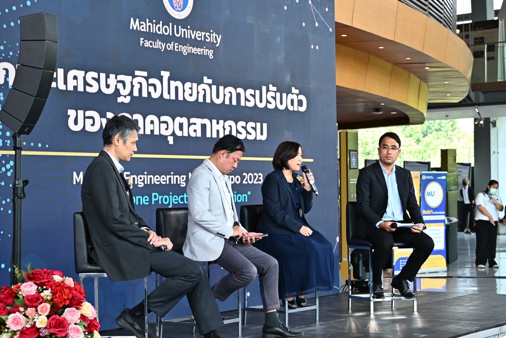 On May 15, 2023. Assoc. Prof. Dr. Jackrit Suthakorn, Dean of the Faculty of Engineering, Mahidol University presided over the Mahidol Engineering Maker Expo 2023: Capstone Project Presentation Event, the best engineering project showcase of 4 th year students in academic year 2023 and gave the opening speech. Asst. Prof. Dr. Pornthip Keangin, Vice Dean for Academic Affairs stated the objectives of the Capstone Project Presentations: to support knowledge and research exchang as well as to showcase the achievements to the public. There were 93 engineering projects presented this year. There were categorized into 4 groups: Healthcare Engineering, Digital Engineering, Logistics & Railway Engineering, and Sustainable & Environmental Engineering. In the event, awards were announced in 3 ranks for each cluster. The winner received 15,000 baht, second prize received 10,000 baht and the third prize received 5,000 baht with certificates for all prizes.