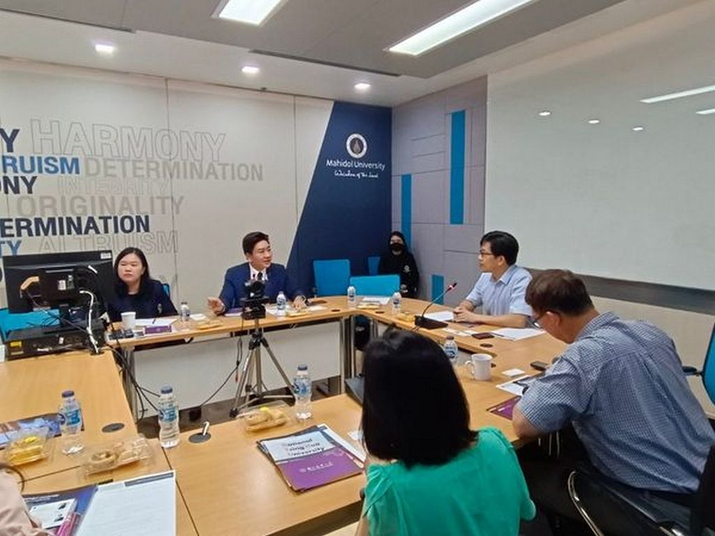 On July 19, 2023, the Faculty of Engineering, Mahidol University led by Assoc. Prof. Dr. Thanapat Wanichanon, Vice Dean for Strategy and Human Capital Management and Asst. Prof. Dr. Pattaraporn Posoknistakul, Assistant to the Dean welcomed Dr. Hung-Yin Tsai, Dean, College of Engineering/ Professor, Department of Power Mechanical Engineering, Dr. Chih-Yung Huang, Chairperson, Department of Power Mechanical Engineering, Dr. Hsiu-Chuan Chou, Director, Institute of Analytical and Environmental Sciences, Dr. Yu-Fen Huang, Director, Institute of Analytical and Environmental Sciences, Dr. Ruey-An Doong, Dean, Tsing Hua International College/ Professor, Institute of Analytical and Environmental Sciences and Dr. Pei-Chi Lin, Assistant Professor, International Bachelor Degree Program from National Tsing Hua University on collaborations, particularly the dual degree program.