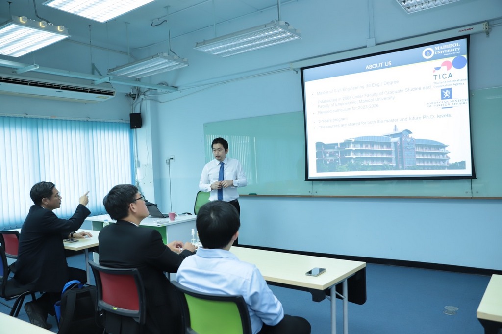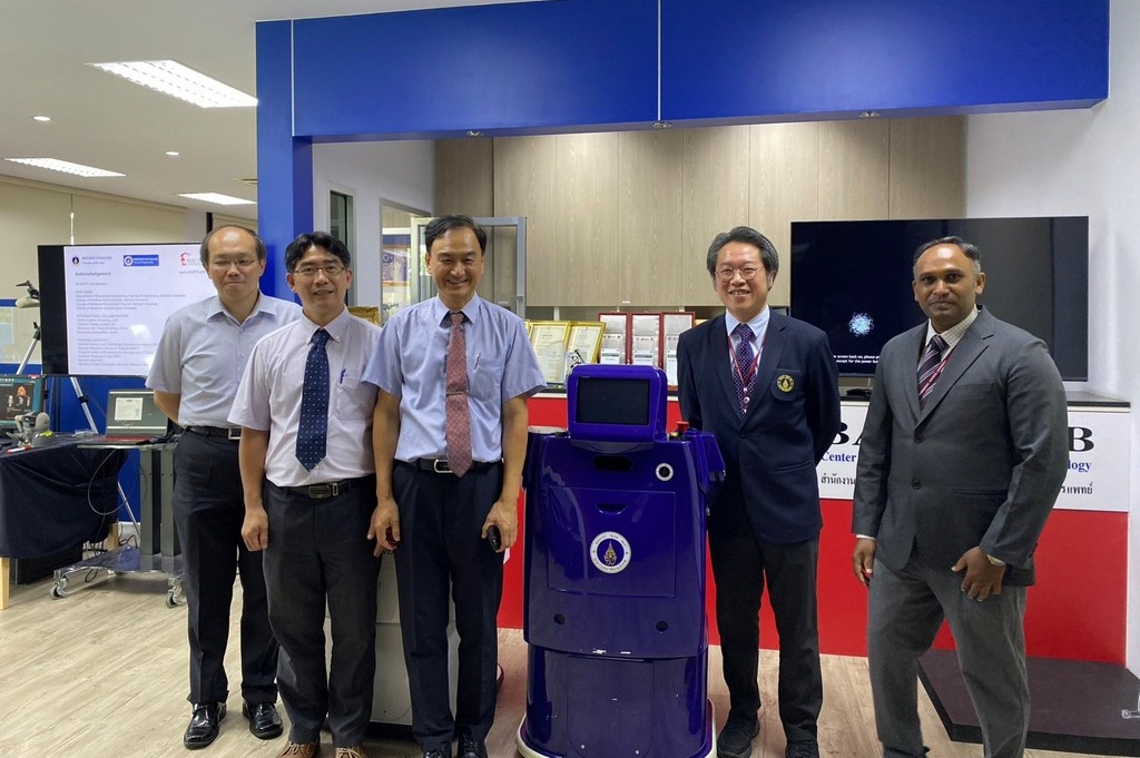 On July 21, 2023, the Faculty of Engineering, Mahidol University led by Assoc. Prof. Dr. Jackrit Suthakorn, Dean of the Faculty of Engineering along with faculty executives and professors welcomed executives and professors from National Cheng Kung University (NCKU), College of Engineering, Taiwan including Prof. Chyan-Deng Jan, Dean of College of Engineering and Distinguished Professor, Hydraulic and Ocean Engineering, Prof. Fong-Chin Su, Chair member of Biomedical Engineering, Prof. Wen-Tai Chiu, Department Chair of Biomedical Engineering, Prof. Dong-Hwang Chen, Workshop Director and Distinguished Professor of Chemical Engineering, Assoc. Prof. Chih-Yung Wu, Vice Chair of Aeronautics and Astronautics, Prof. Kuan-Zong Fung, Materials Science and Engineering, Assoc. Prof. Wen-Che Hou, Environmental Engineering, Prof. Yun-Che Wang, Department Chair of Civil Engineering and, Assoc. Prof. Kuang-Yen Liu, Civil Engineering on program collaboration meeting and laboratory visit. The meeting was held at Innogineer Studio, Floor 1, Building 3, Faculty of Engineering, Mahidol University.
