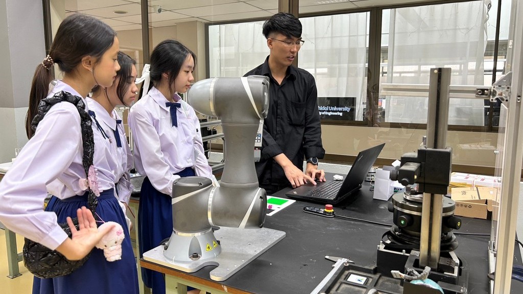On February 1, 2024, the Faculty of Engineering at Mahidol University, led by Asst. Prof. Dr. Chamras Promptmas, Advisor to the Dean for Supporting the Organization's Mission, introduced the faculty and warmly welcomed students from Mater Dei School to engage in engineering practice. The event took place at meeting room R114, 1st floor, Building 1, Faculty of Engineering, Mahidol University. During the event, there was an introduction to the faculty, an overview of the TCAS student admission system, and an introduction to the department and its teaching. Assoc. Prof. Waressara Weerawat, Deputy Head of the Cluster of Logistics and Rail Engineering, who is an alumna of Mater Dei School, provided insights. Additionally, students had the opportunity to practice engineering within the laboratories of various departments.
