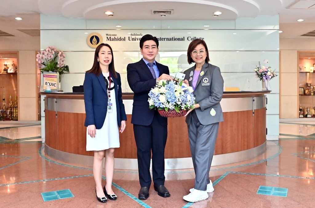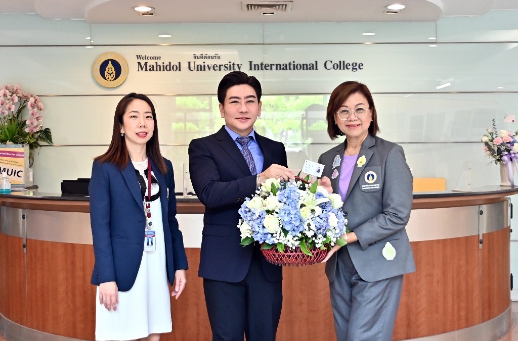 On March 26, 2024, Assoc. Prof. Dr. Thanapat Wanichanon, Dean of Engineering, along with Dr. Rojjalak Chuckpaiwong, Deputy Dean for Policy Planning and Quality Assurance, presented congratulatory flowers to commemorate the 38th anniversary of Mahidol University International College's establishment. The evnt took place at the Aditayadorn Building, Mahidol University International College.