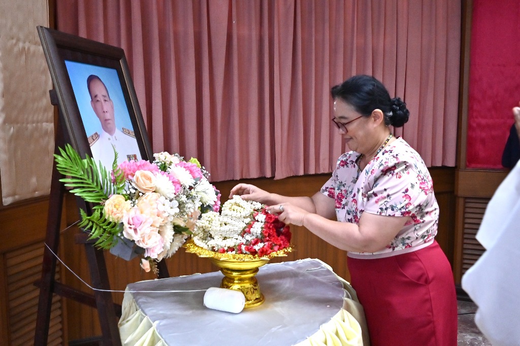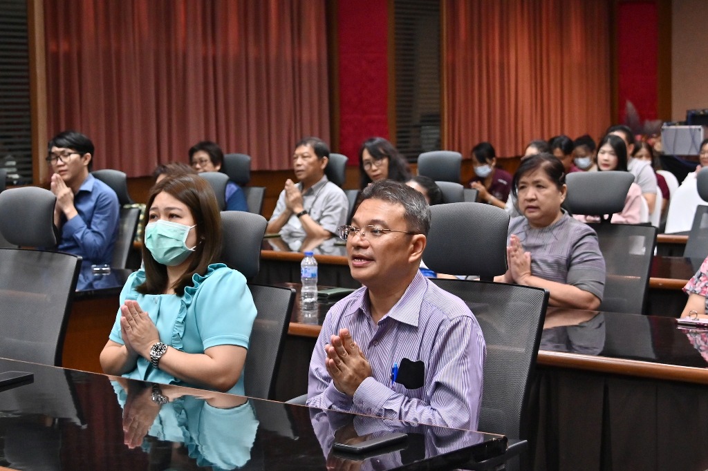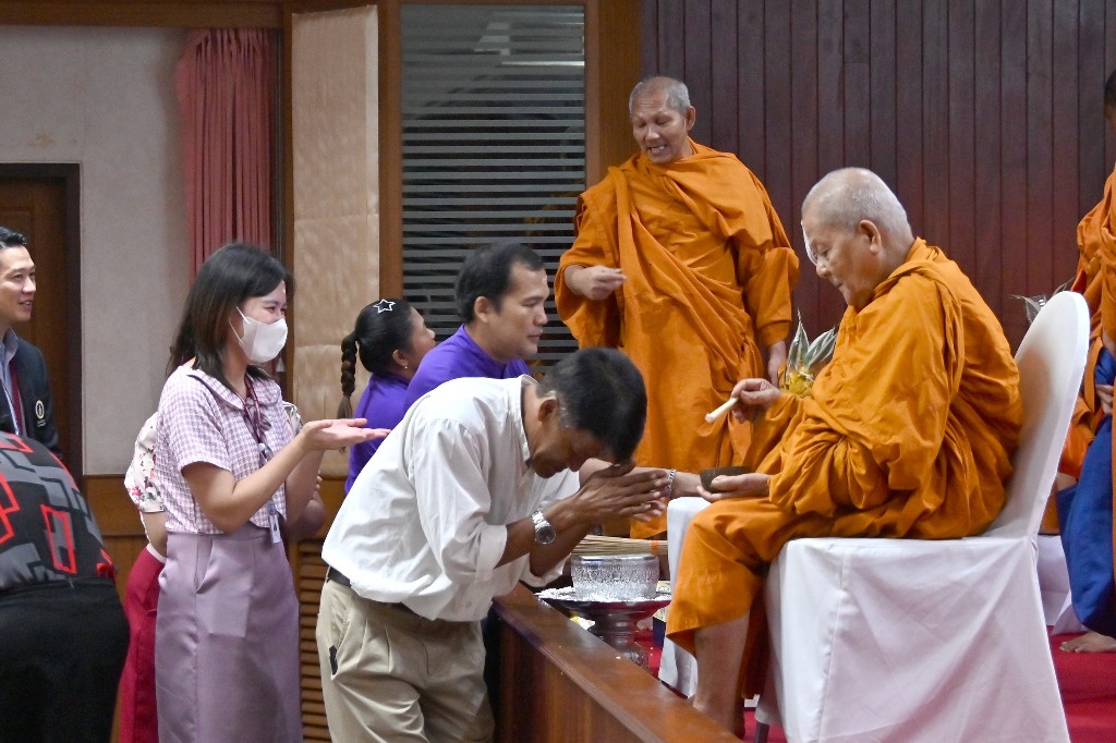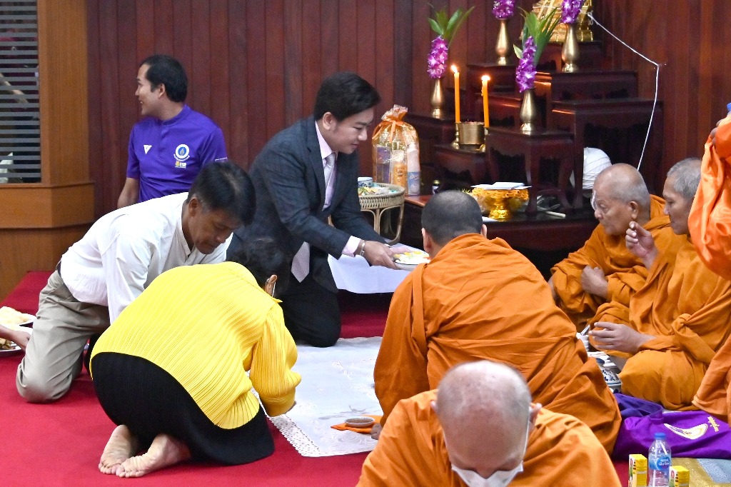On May 14, 2024, Assoc. Prof. Dr. Thanapat Wanichanon, Dean of the Faculty of Engineering, Mahidol University, along with the management team, faculty, and staff, participated in the “Remembrance of the Founder and Former Dean of the Faculty of Engineering, Mahidol University: Asst. Prof. Dr. Thanakorn Uan-on.” Phrakhru Pathomwarajarn from Wat Don Yai Hom, advisor to the deacon of Nakhon Pathom Province, along with a total of nine monks, performed a Buddhist ceremony at meeting room R114, Building 1, Faculty of Engineering, Mahidol University.